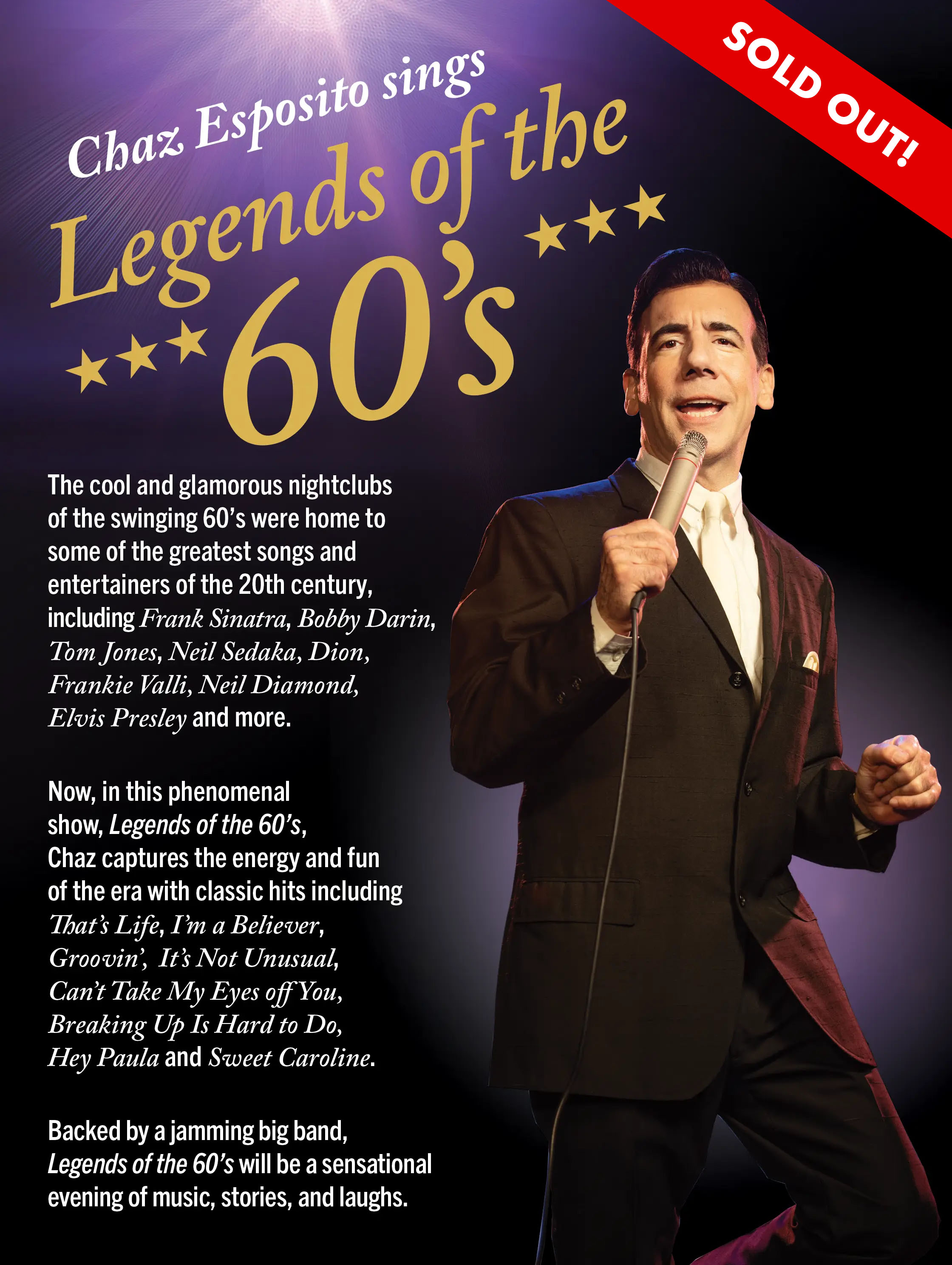 Our five musical productions begin with our annual holiday show in December, the festive Home for the Holidays, followed by four musicals in 2026 that feature passionate searches for romance, fame and fortune. The season also includes five concerts featuring some of the greatest popular music of the 50s and 60s with tributes to legendary musical icons.